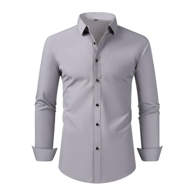 Men Formal Shirt Elastic Office Tops Long-Sleeve Solid Business Shirts